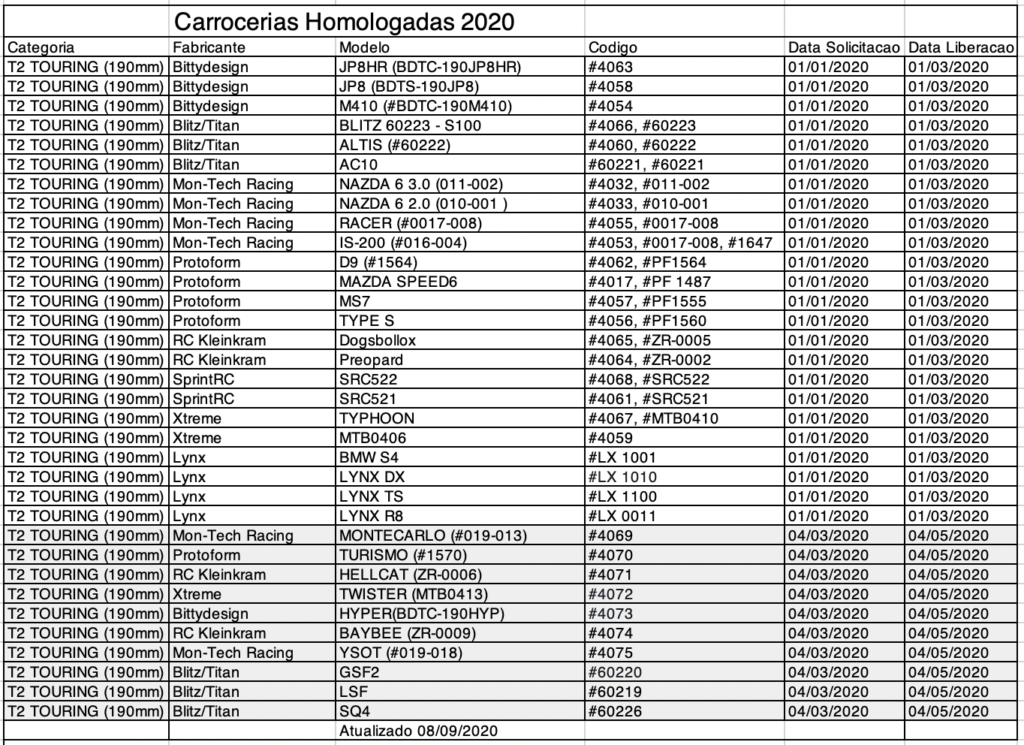 Lista de Carrocerias Homologadas 2020 atualizada 09/Set/2020